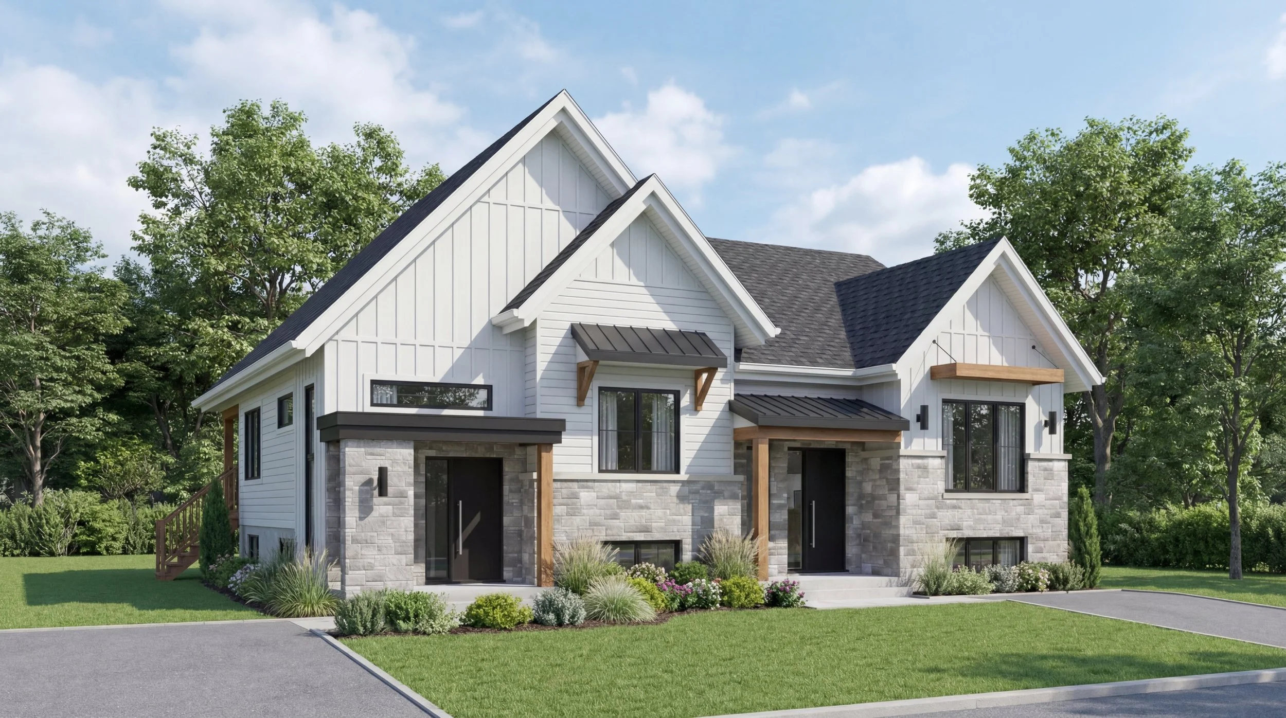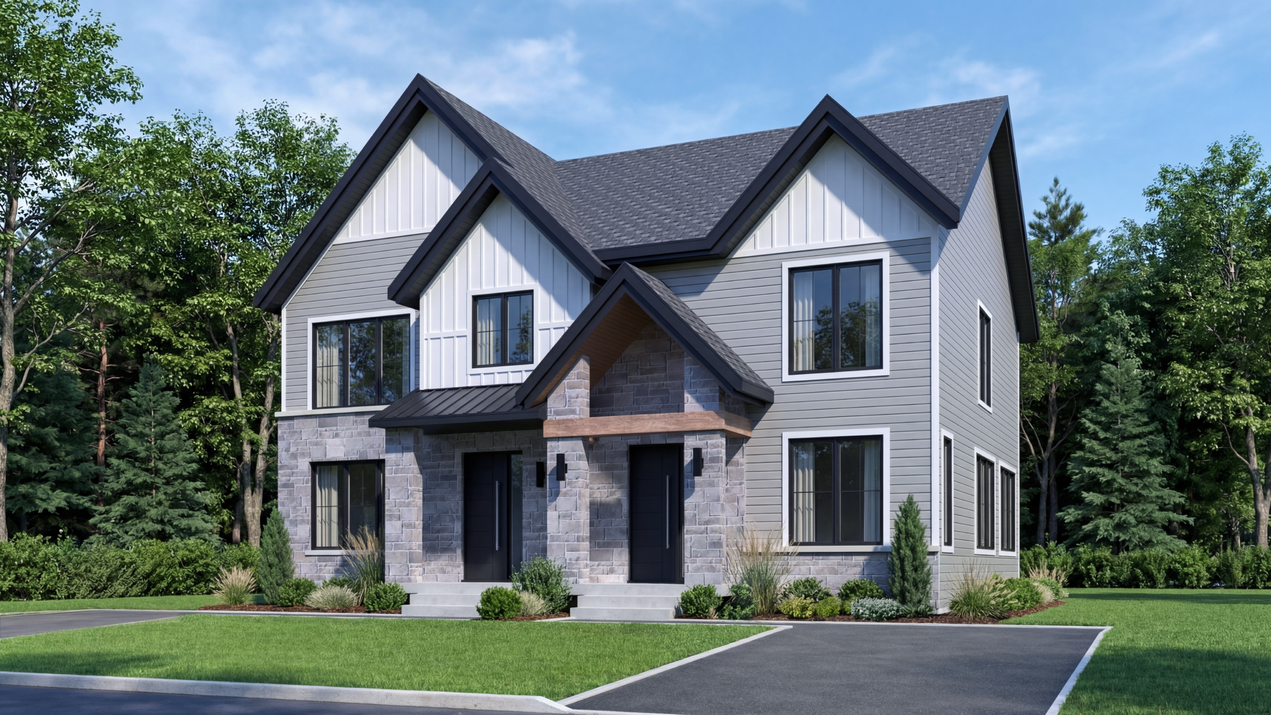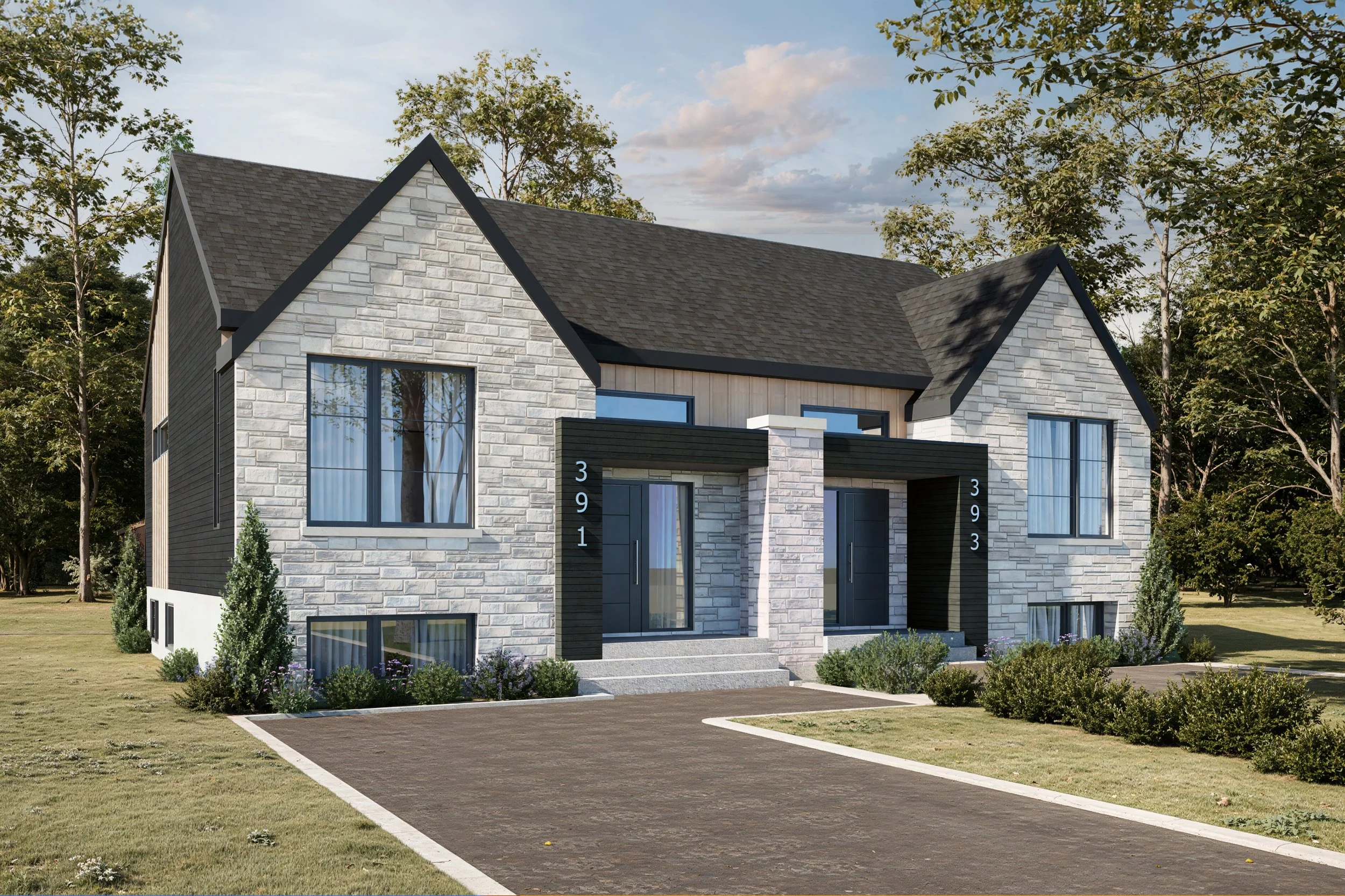 Les habitations du Quartier La Croisée sont conçues pour s’intégrer naturellement à leur environnement. Volumes équilibrés, matériaux durables et fenestration abondante créent des espaces lumineux et accueillants.